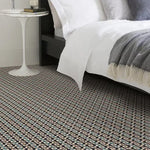 The stunning Dark and light tones come together beautifully in the unique pattern of the Quirky Margo Selby Shuttle Carpet. A show stopping art piece for your home. Make a statement in your bedroom, lounge, dining room or home office. Woven using British Wool it is completely made to order in 3.66m wide broadloom.